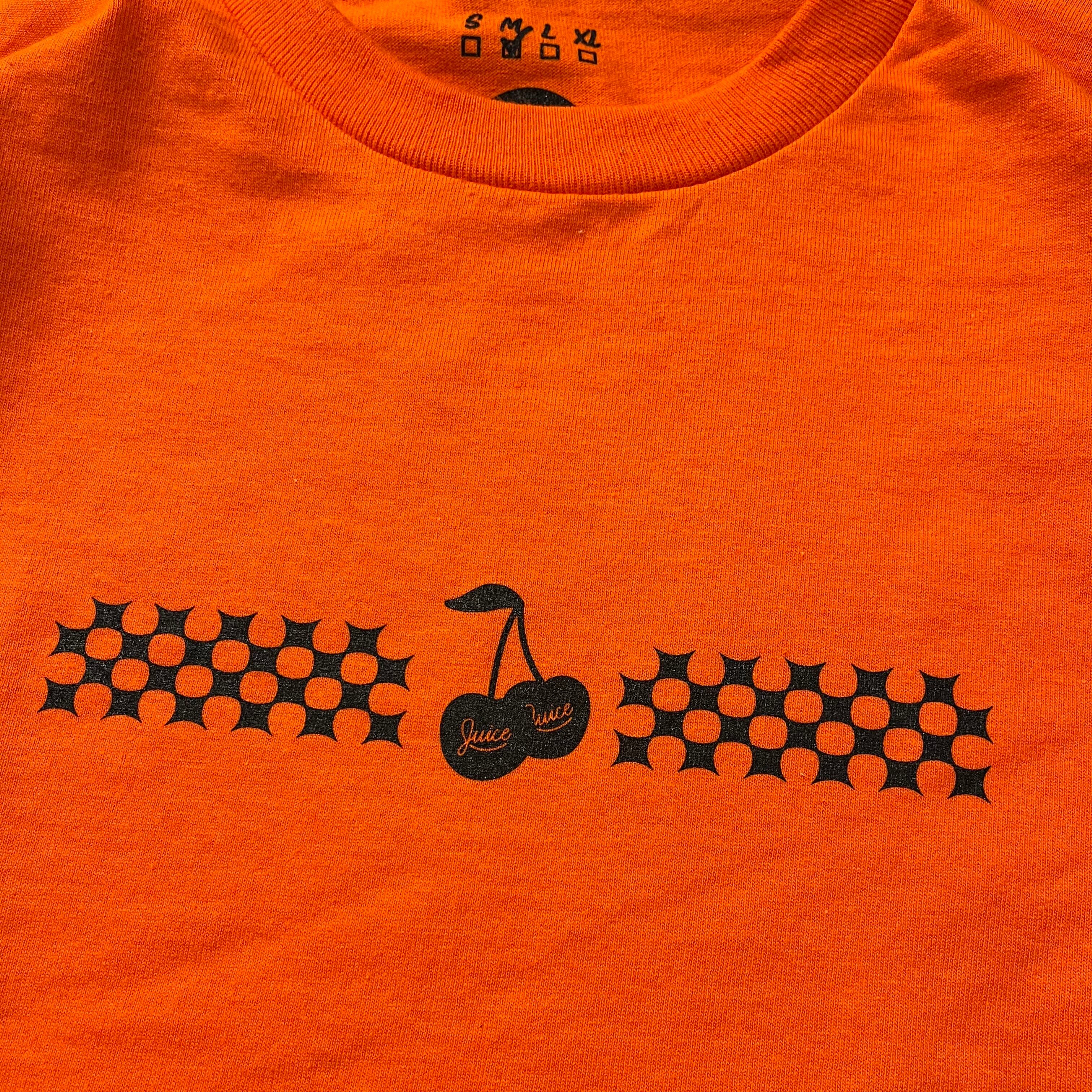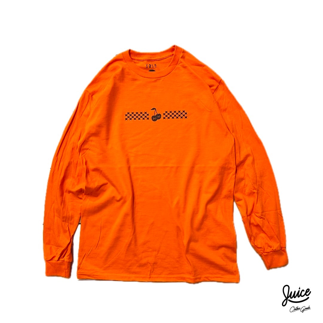 【オリジナルチェッカーに挟まれたフレッシュなチェリーが胸のセンターで輝きます。】