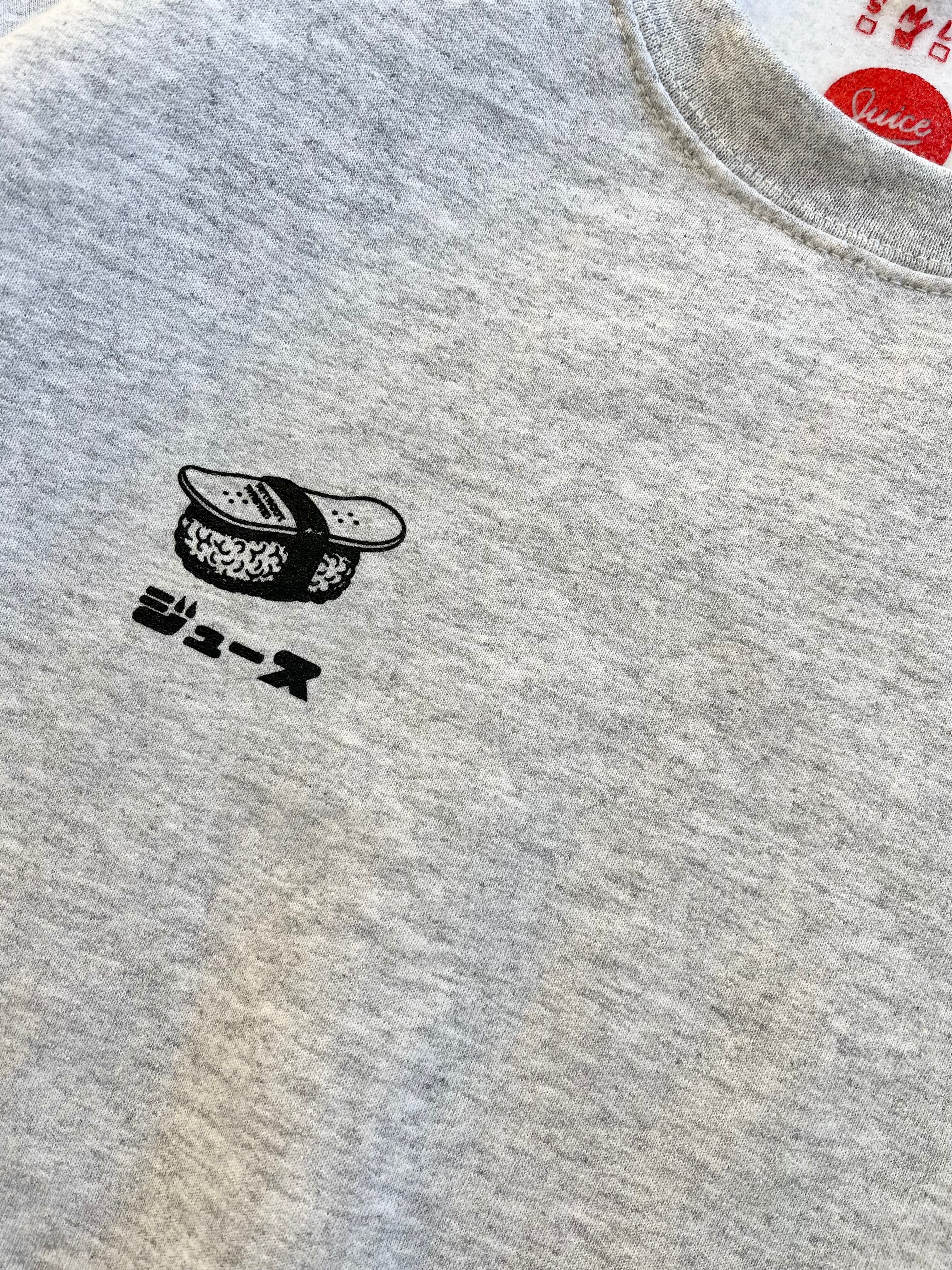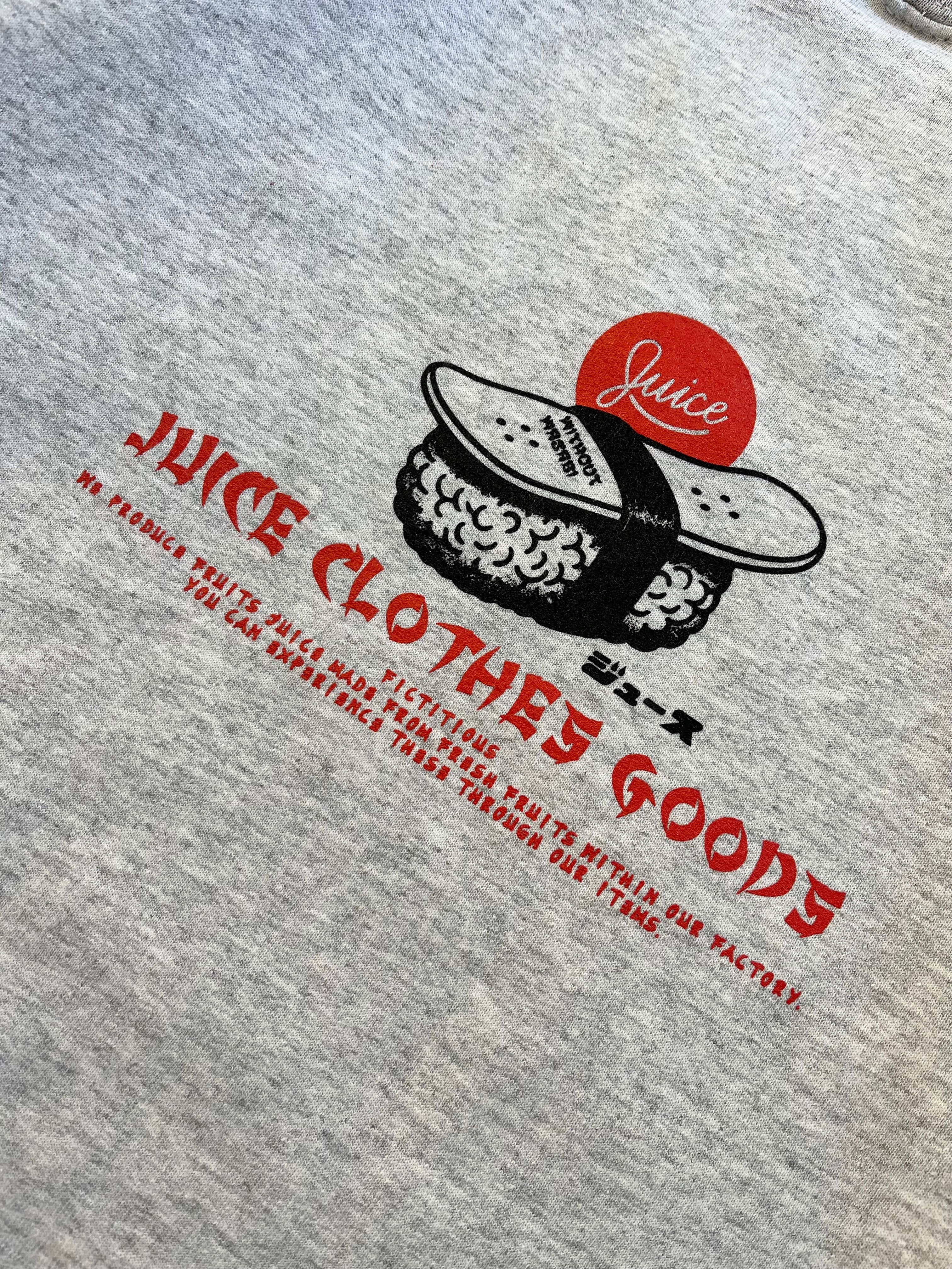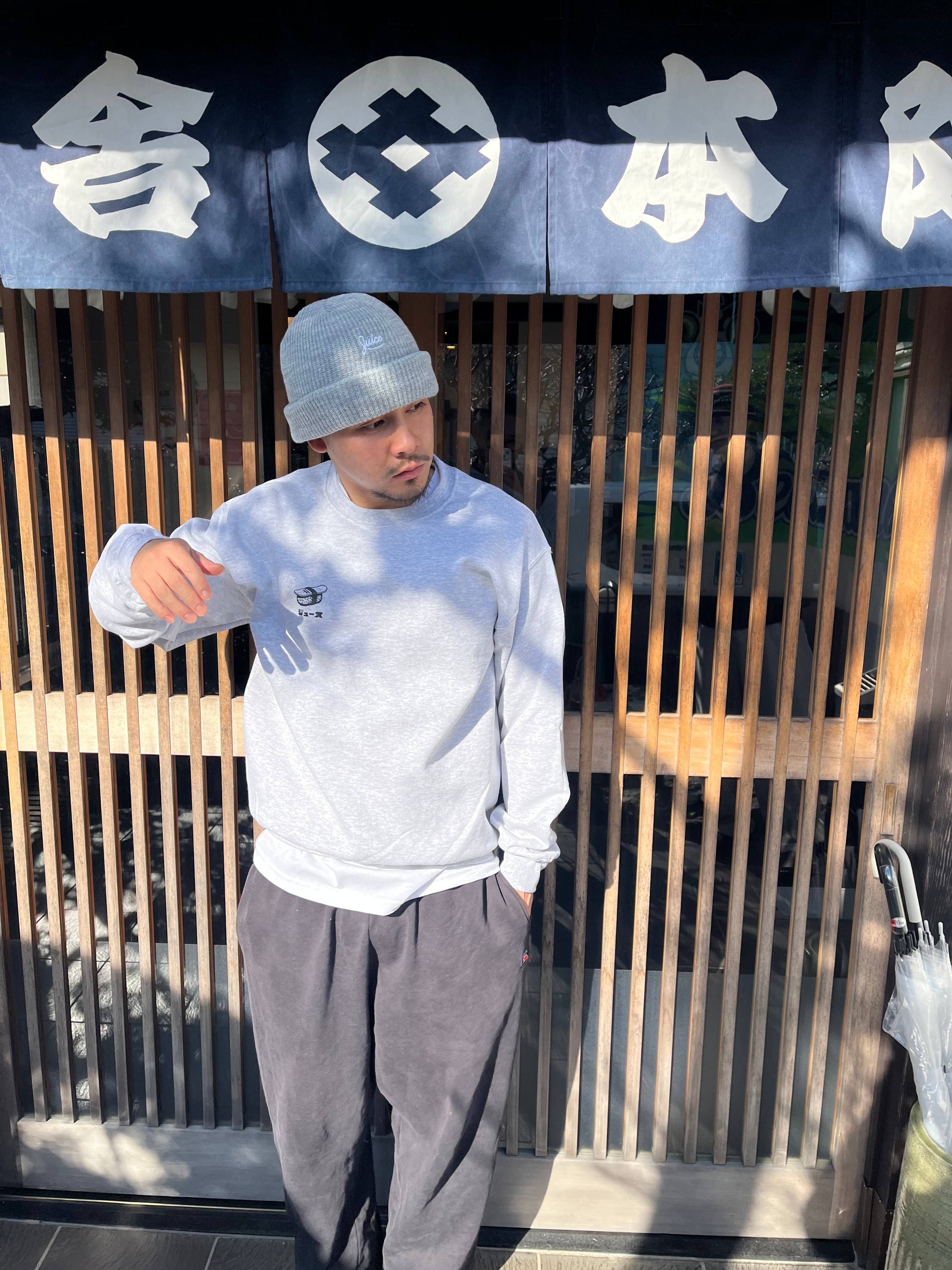ゆったりとしたサイズのオーセンティックな裏起毛アメリカンスウェットにサビ抜きデッキ寿司のコントラストがGood!!