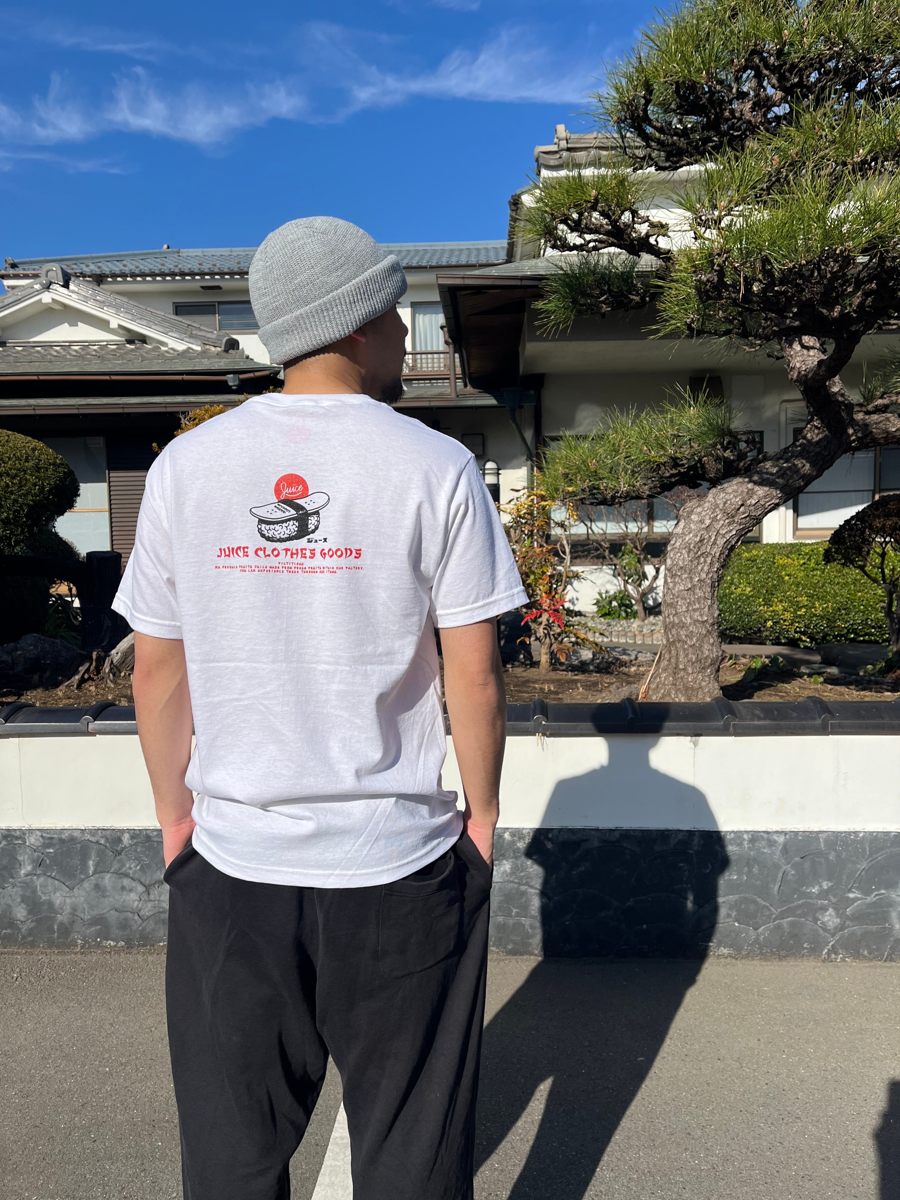 USAコットン100%のオーセンティックなWHITE T-Shirtsにサビ抜きデッキ寿司のコントラストがGood!!